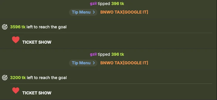 Taniec erotyczny, Flashing, Klapsy, Striptiz, Topless, Twerking, Zaglądanie pod spódniczkę, Palenie, Camel toe, Palcówka, Dildo lub wibrator, Zabawki, Kobiecy wytrysk, Masturbacja, Orgazm, Poniżenie, Sprośne słówka, Pokaz w oliwie